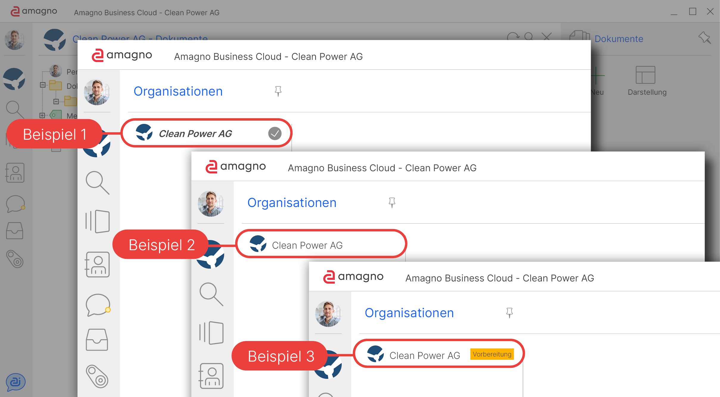 Dann werden Sie beim nächsten Start von Amagno in dieser Organisation angemeldet.